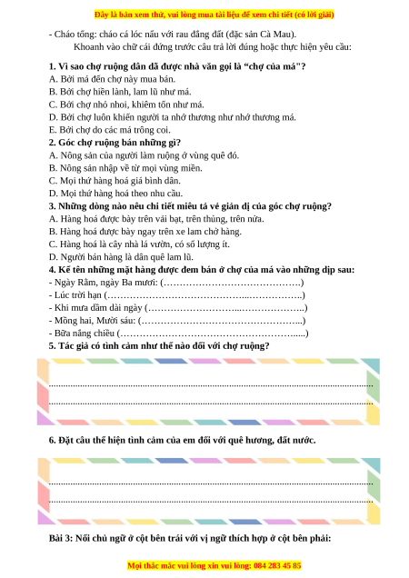 Bài 1: Đọc câu chuyện sau và thực hiện yêu cầu bên dưới: CHỢ CỦA MÁ