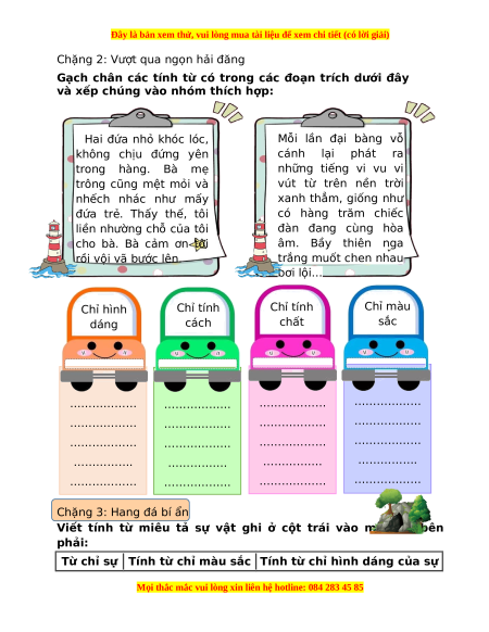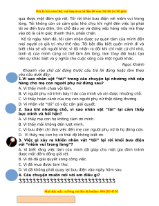liền nhường chỗ của tôi đàn đang cùng hòa cho bà. Bà cảm ơn tôi âm. Bầy thiên nga rồi vội vã bước lên. trắng muốt chen nhau bơi lội… Chỉ hình Chỉ tính Chỉ tính Chỉ màu dáng cách chất sắc ……………… ……………… ……………… ……………… ……………… ……………… ……………… ……………… ……………… ……………… ……………… ……………… ……………. ……………. ……………. ……………. ……………… ……………… ……………… ……………… …. …. … … Chặng 3: Hang đá bí ẩn