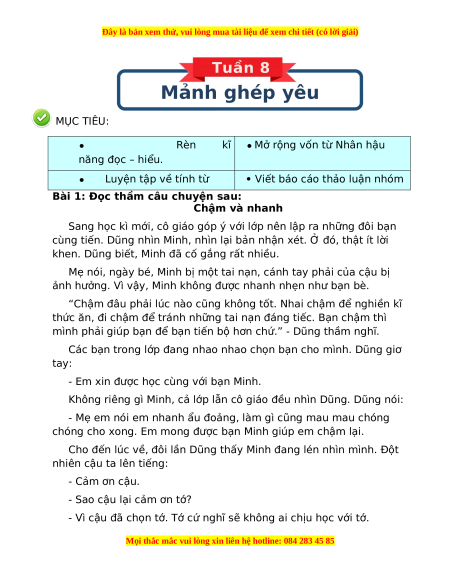 Tuần 8 Mảnh ghép yêu MỤC TIÊU: thương Rèn kĩ