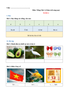 Môn: Tiếng Việt 1 (Chân trời sáng tạo) TUẦN 2 I. Đọc