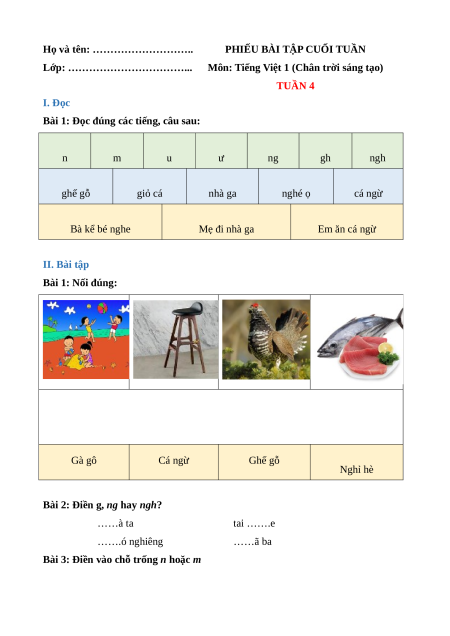 PHIẾU BÀI TẬP CUỐI TUẦN