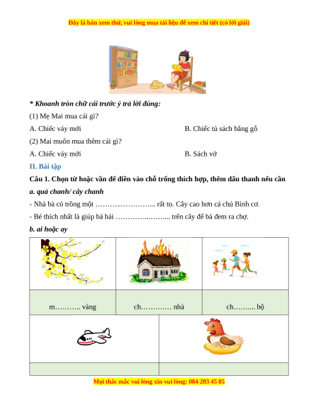 * Khoanh tròn chữ cái trước ý trả lời đúng: (1) Mẹ Mai mua cái gì?