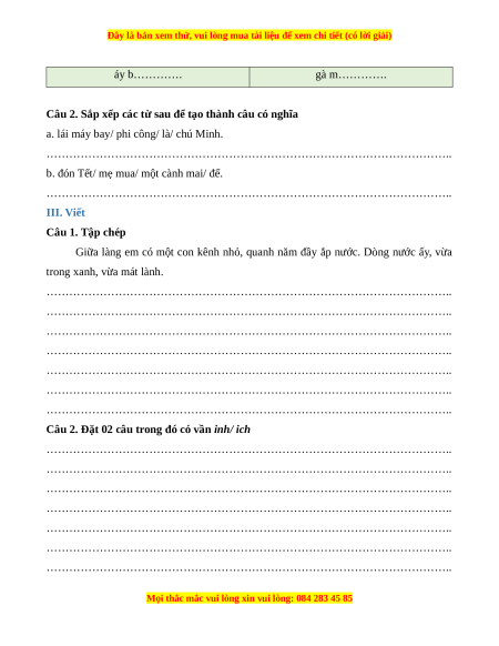 …………………………………………………………………………………………….. III. Viết Câu 1. Tập chép