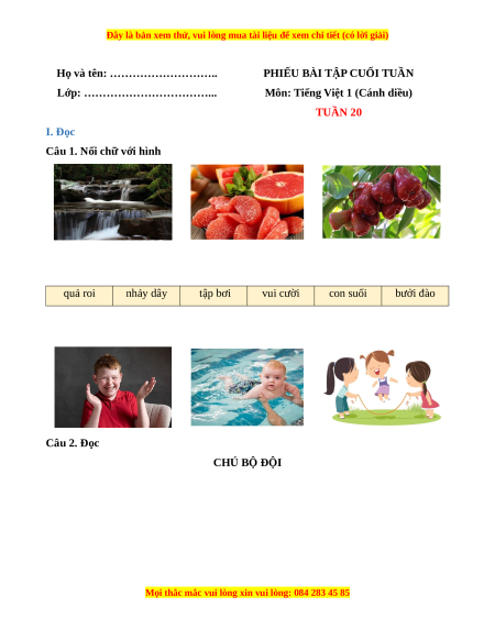 - Tailieugiaovien.com.vn giới thiệu phiếu bài tập cuối tuần môn Tiếng việt lớp 1 bộ Cánh diều mới nhất nhằm giúp Giáo viên có thêm tài liệu tham khảo Tiếng việt lớp 1.