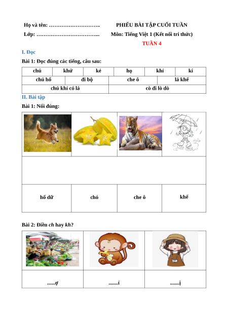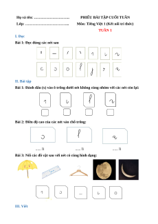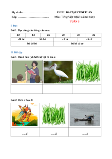 - Tailieugiaovien.com.vn giới thiệu phiếu bài tập cuối tuần môn Tiếng việt lớp 1 bộ Kết nối tri thức mới nhất nhằm giúp Giáo viên có thêm tài liệu tham khảo Tiếng việt lớp 1.