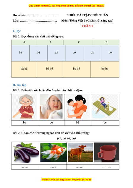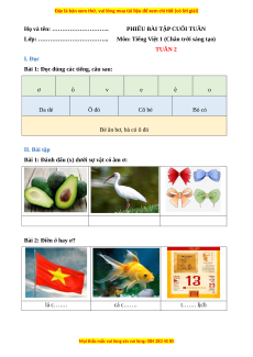 - Tailieugiaovien.com.vn giới thiệu phiếu bài tập cuối tuần môn Tiếng việt lớp 1 bộ Chân trời sáng tạo mới nhất nhằm giúp Giáo viên có thêm tài liệu tham khảo Tiếng việt lớp 1.