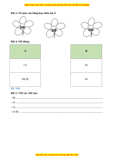 Bài 3: Tô màu vào bông hoa chứa âm ê: Bài 4: Nối đúng: A B Cỏ bé Mẹ bế bò III. Viết