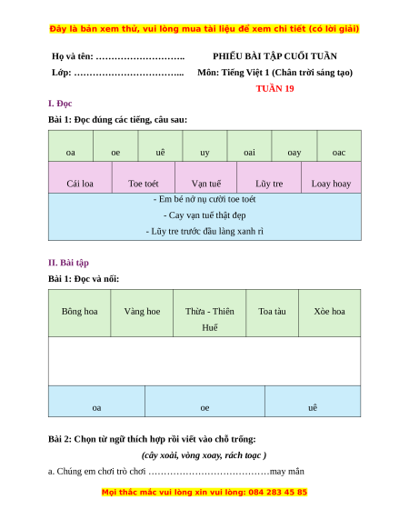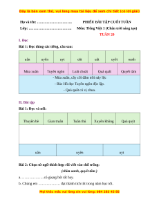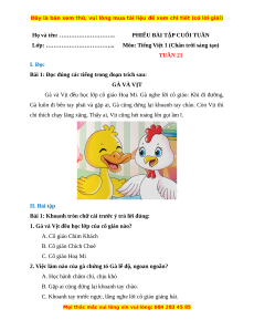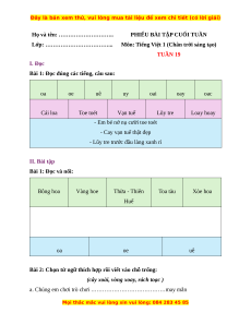 - Tailieugiaovien.com.vn giới thiệu phiếu bài tập cuối tuần môn Tiếng việt lớp 1 bộ Chân trời sáng tạo mới nhất nhằm giúp Giáo viên có thêm tài liệu tham khảo Tiếng việt lớp 1.