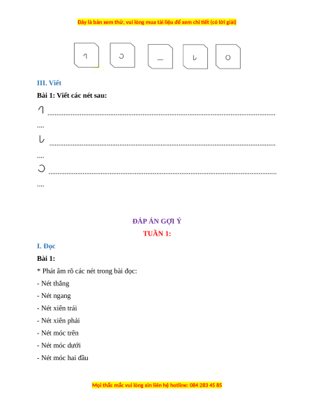 ............................................................................................................................... .... ĐÁP ÁN GỢI Ý TUẦN 1: I. Đọc Bài 1: