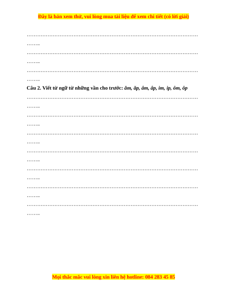 Câu 2. Viết từ ngữ từ những vần cho trước: ăm, ăp, âm, âp, im, ip, ôm, ôp