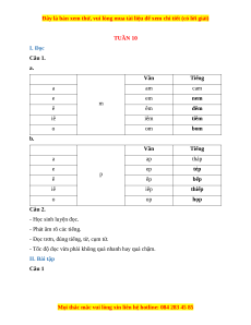 Môn: Tiếng Việt 1 (Cánh diều) TUẦN 10 I. Đọc