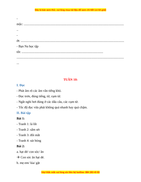 ..................................................................................................................................... ... TUẦN 10: I. Đọc