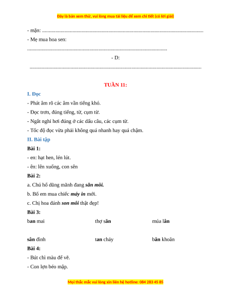 .................................................................................................................................. TUẦN 11: I. Đọc