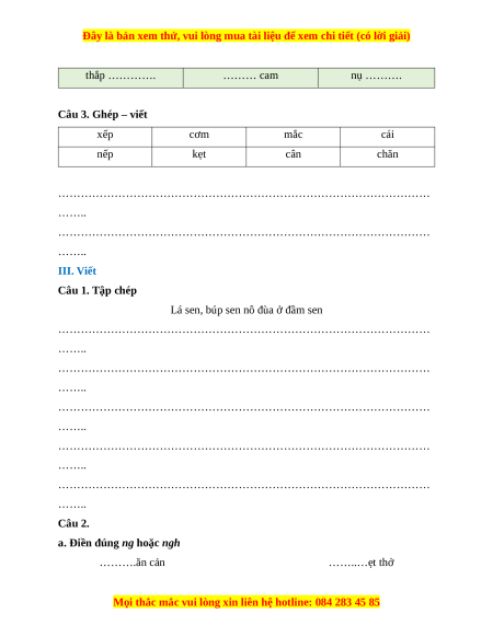 ……………………………………………………………………………………… …….. III. Viết Câu 1. Tập chép