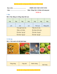- Tốc độ đọc vừa phải không quá nhanh hay quá chậm. II. Bài tập Bài 1: - Tranh 1: ong mật - Tranh 2: bánh chưng - Tranh 3: vầng trăng - Tranh 4: quả sung Bài 2: