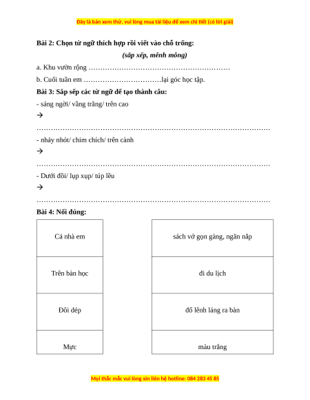 Bài 3: Sắp sếp các từ ngữ để tạo thành câu: