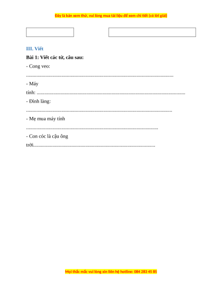 Bài 1: Viết các từ, câu sau: - Cong veo: