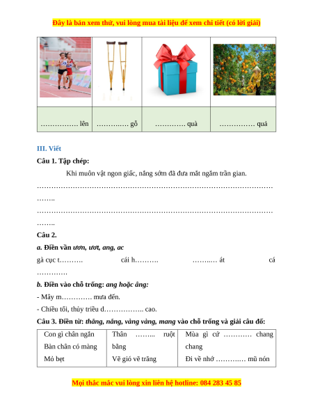 ……………. lên ……….…. gỗ …………. quà …………… quả III. Viết Câu 1. Tập chép: