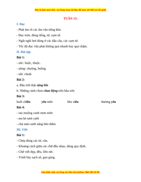 b. Những cánh chim chao liệng trên bầu trời. Bài 3: buổi chiều yêu mến liêu xiêu thương yêu Bài 4: - rau muống xanh mơn mởn - em bé tươi cười
