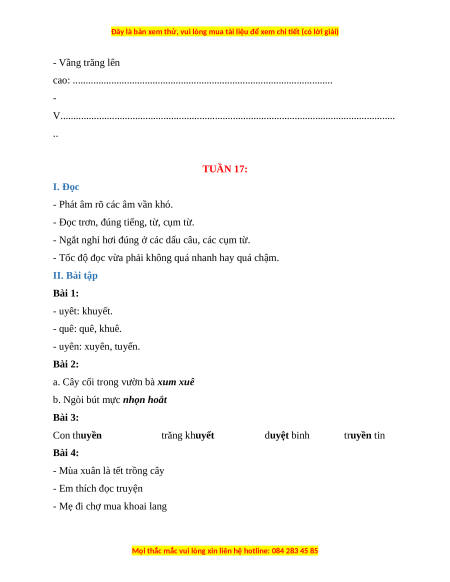 V.................................................................................................................................. .. TUẦN 17: I. Đọc