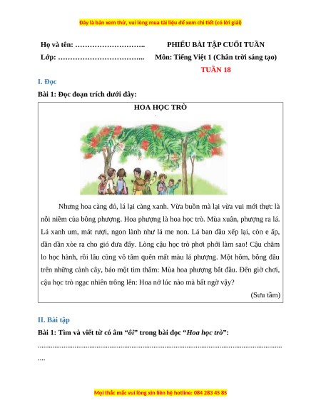 Bài 1: Đọc đoạn trích dưới đây: HOA HỌC TRÒ