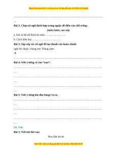 Bài 3: Sắp xếp các từ ngữ để tạo thành câu hoàn chỉnh: