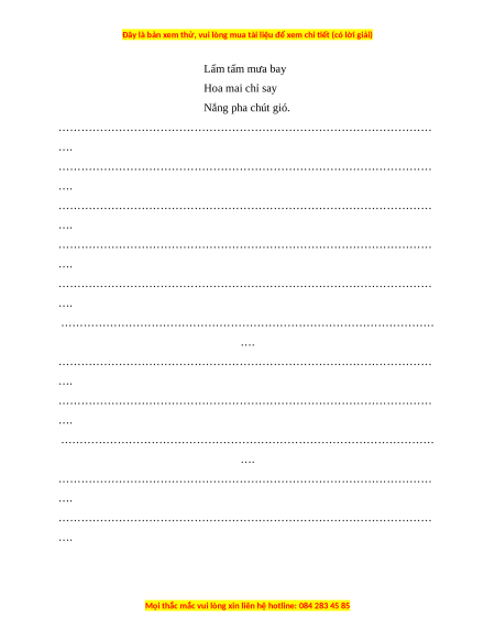 Bài 1: Viết bài thơ sau: Hoa đào ưa rét