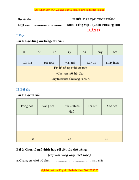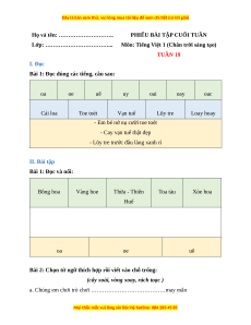 - Tailieugiaovien.com.vn giới thiệu phiếu bài tập cuối tuần môn Tiếng việt lớp 1 bộ Chân trời sáng tạo mới nhất nhằm giúp Giáo viên có thêm tài liệu tham khảo Tiếng việt lớp 1.