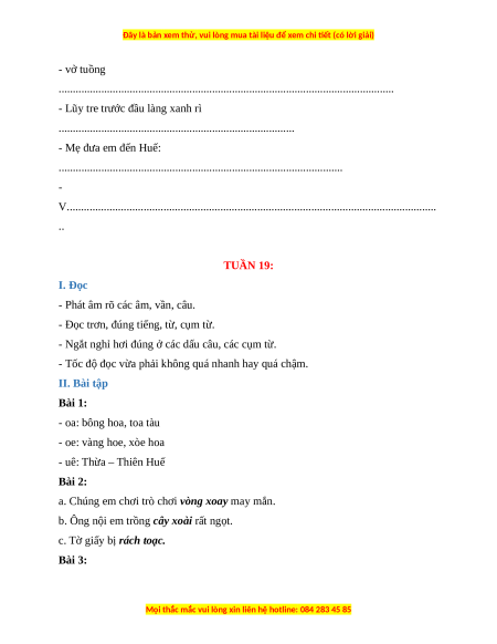 V.................................................................................................................................. .. TUẦN 19: I. Đọc