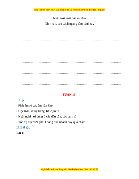 ……………………………………………………………………………………… …. TUẦN 19: I. Đọc
