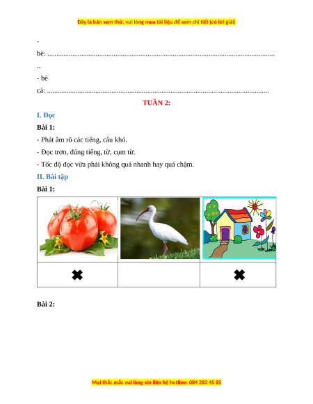 cá: ............................................................................................................................ TUẦN 2: I. Đọc Bài 1: