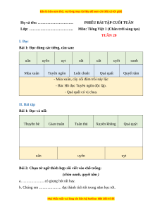 Bài 1: Đọc đúng các tiếng, câu sau: uân uyên uyt oăt uât uyêt oanh Mùa xuân Tuyên ngôn Loắt choắt Quả quất Quyết tâm