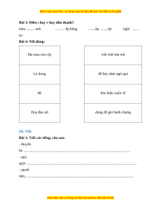 màu ......... anh …….. ếp hàng ….....ắp ….....ếp ngôi …… ao Bài 4: Nối đúng: Mẹ mua trái cây viết chữ nắn nót Lá dong để bày nâm ngũ quả Bé báo hiệu xuân về Hoa đào nở dùng để gói bánh chưng III. Viết