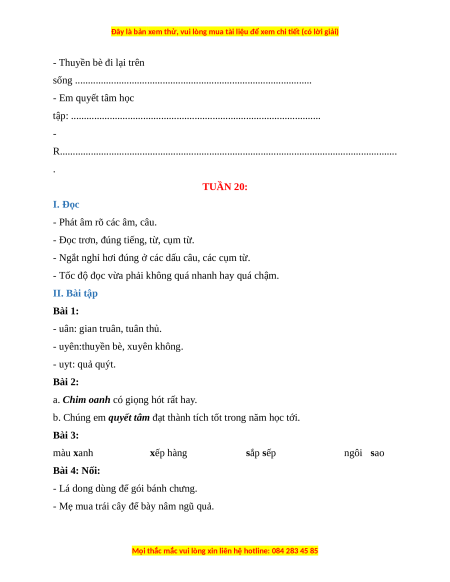 R................................................................................................................................... . TUẦN 20: I. Đọc