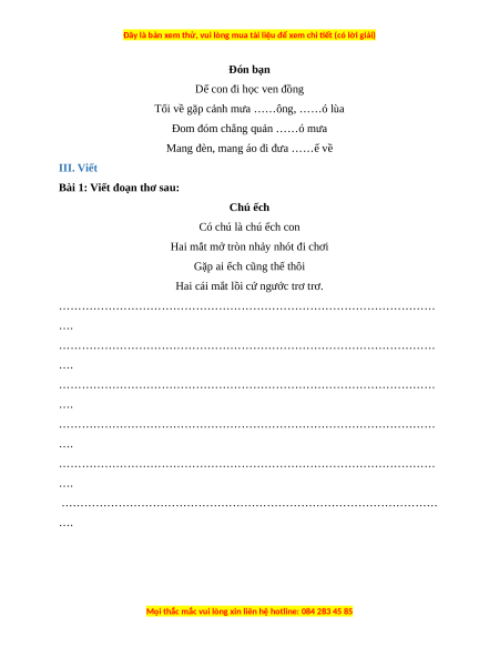 Bài 1: Đọc đoạn thơ dưới đây: CHÚ ẾCH Có chú là chú ếch con