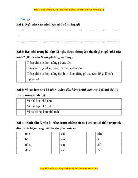 Bài 1: Đọc đoạn thơ dưới đây. EM YÊU NHÀ EM