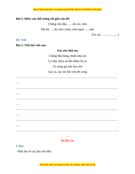 ……………………………………………………………………………………… …. TUẦN 21: I. Đọc