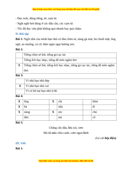 Tiếng chim sẻ hót, tiếng ếch học nhạc, tiếng gà cục tác, tiếng dế mèn ngâm thơ. Bài 3: Vì nhà bạn nhỏ đẹp X Vì nhà bạn nhỏ vui