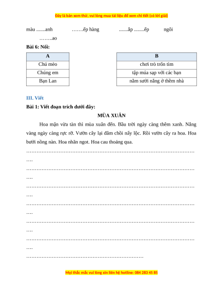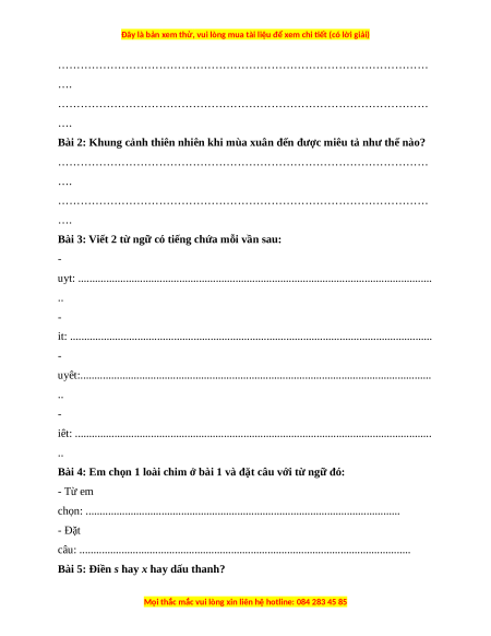 Bài 1: Đọc đoạn văn sau: MÙA XUÂN
