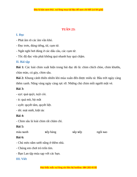 Môn: Tiếng Việt 1 (Chân trời sáng tạo) TUẦN 23 I. Đọc