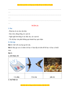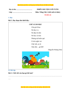 Bài 1: Viết đoạn thơ sau: Chú gà đi học Chú gà đi học Nó đọc ó o Nó dậy từ sớm Nó học cả trưa Nhưng mà buồn quá O tròn nghe vui Chữ viết, eo ôi Xấu như… gà bới!