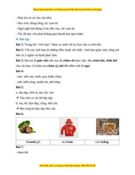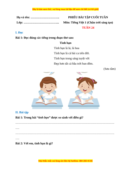 Bài 1: Đọc đúng các tiếng trong đoạn thơ sau: Tình bạn Tình bạn là lá, là hoa