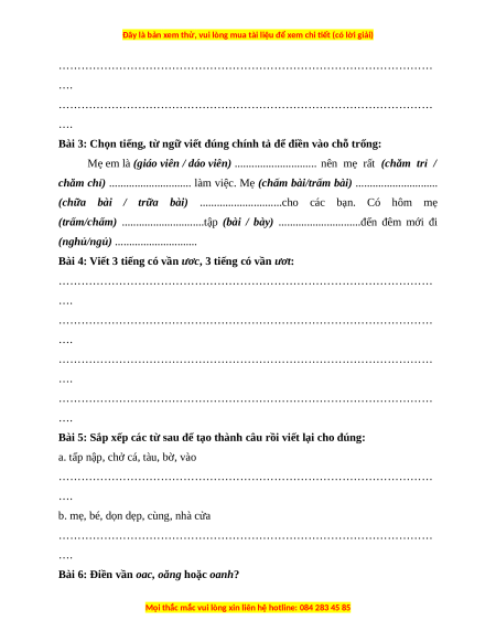 chăm chỉ) ............................. làm việc. Mẹ (chấm bài/trấm bài) .............................