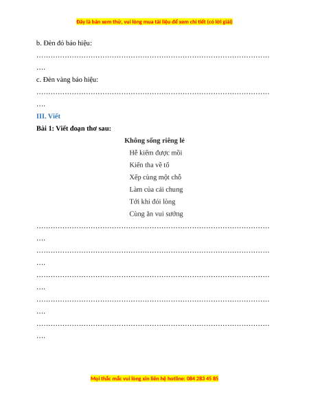 Bài 5: Dựa vào đèn giao thông, em hãy viết tiếp các câu sau: a. Đèn xanh báo hiệu: