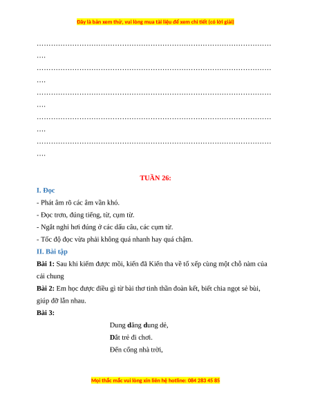 ……………………………………………………………………………………… …. TUẦN 26: I. Đọc