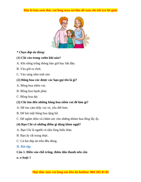 1. Mới sáng sớm tinh mơ Chi đã vào vườn hoa của trường. Em đến tìm những