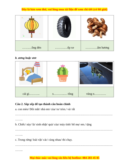 Câu 2. Sắp xếp để tạo thành câu hoàn chỉnh