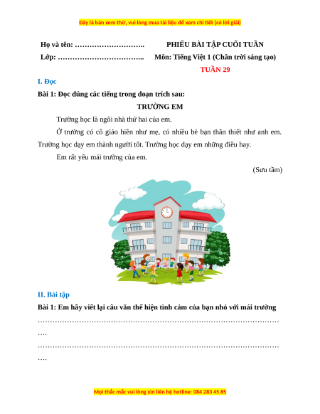 Em rất yêu mái trường của em. (Sưu tầm) II. Bài tập