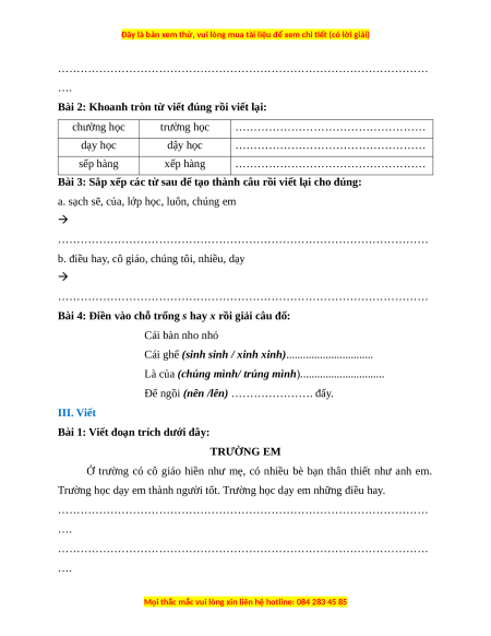 Bài 2: Em khoanh tròn vào các chữ in đậm rồi viết lại chường học trường học trường học dạy học dậy học dạy học sếp hàng xếp hàng xếp hàng Bài 3: