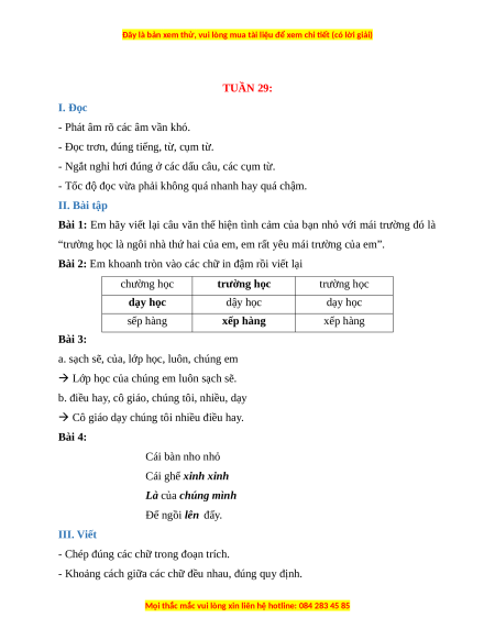 Môn: Tiếng Việt 1 (Chân trời sáng tạo) TUẦN 29 I. Đọc